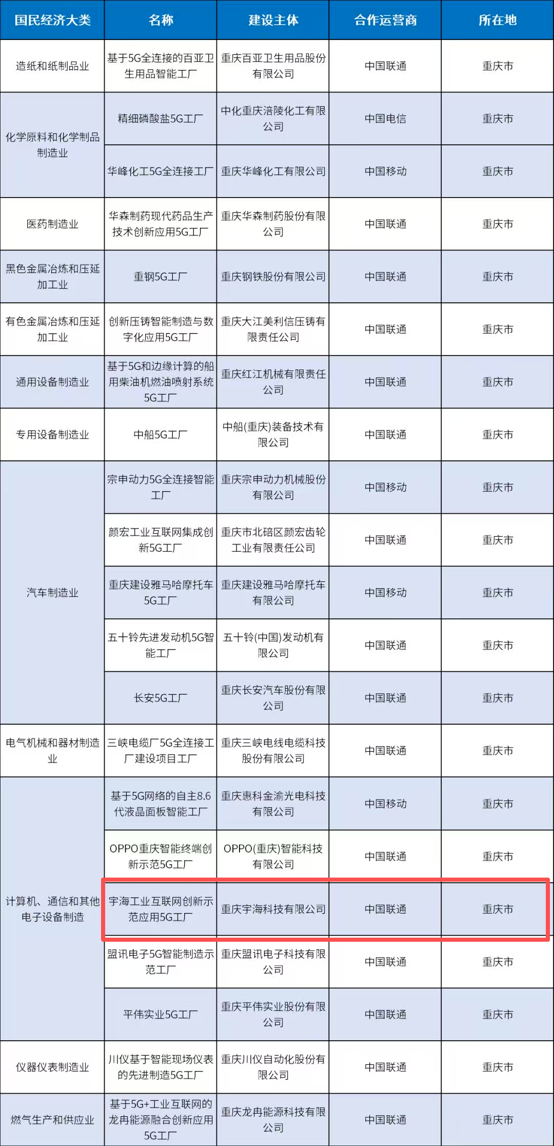 近日,工业和信息化部信息通信管理局对《2025年5G工厂名录》入选项目进行了公示。重庆宇海科技有限公司申报的“宇海工业互联网创新示范应用5G工厂”项目成功入选该名录。
