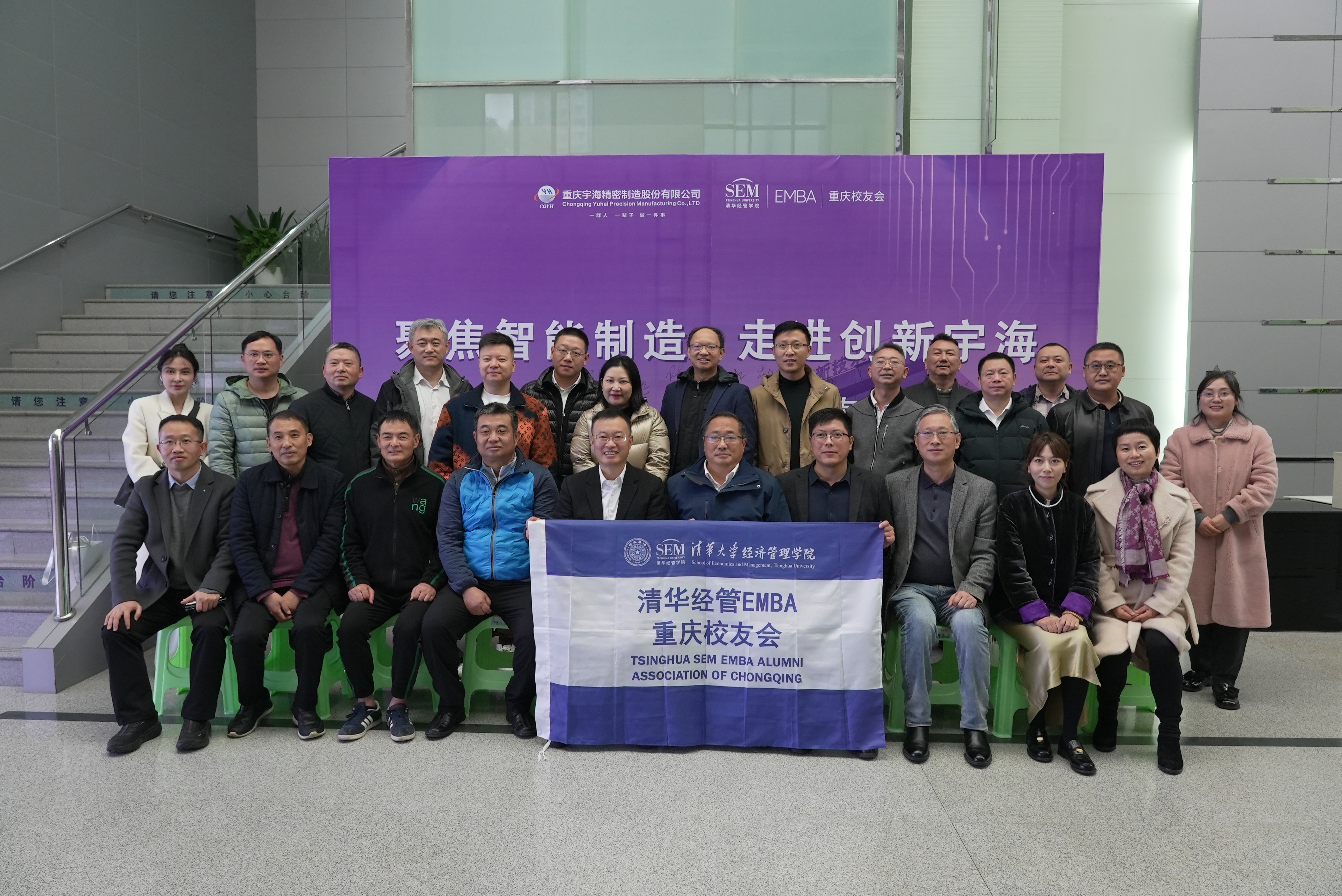 12月2日,清华经管EMBA重庆校友会“聚焦智能制造 走进创新宇海”活动在宇海精密举行。清华经管EMBA重庆校友会会长陈友坤、秘书长何阳春等近三十位理事和校友参加活动。公司董事长谢平、重庆校友会副秘书长、公司总经理袁卫顺热情接待并参加座谈。