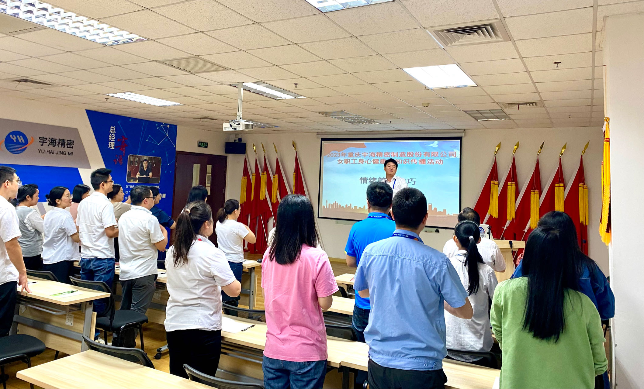 心有阳光,一路芬芳。为保障企业员工身心健康,进一步提高员工心理健康水平,帮助员工提升情绪管理能力,以应对工作和生活中的挑战和压力,从而提高工作效率、改善人际关系、提升幸福感。9月21日下午,璧山区总工会在公司璧山厂区组织开展了一场“情绪管理技巧”为主题的心理知识讲座,现场近40余名员工参与讲座。