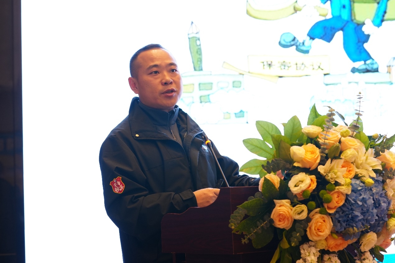 27日晚,在云海国际酒店会场,公司董事长谢平、总经理袁卫顺、副总经理何勃先后作精彩分享。
